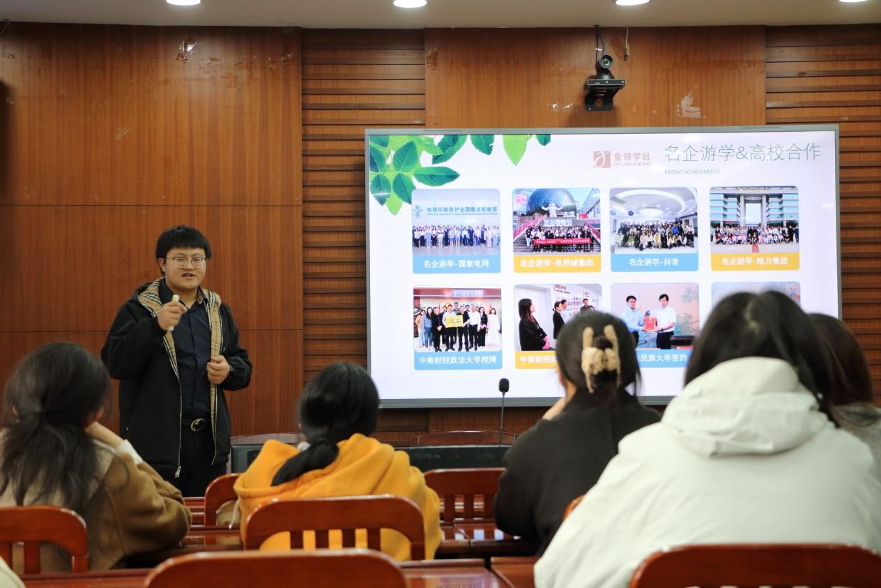 杨浩然分享自己的职场经验和创业经历,带领同学们感受真实的商业场景,激发大家对未来职业生涯的思考。他从公司介绍、趋势分析、卷对姿势三个方面讲述自己的经历,分析了近些年的职业趋势,鼓励同学们走出校园、探索外界,同时强调三公牌 学生要理解事物底层逻辑、普遍规律,紧跟时代潮流,不给自我设限。