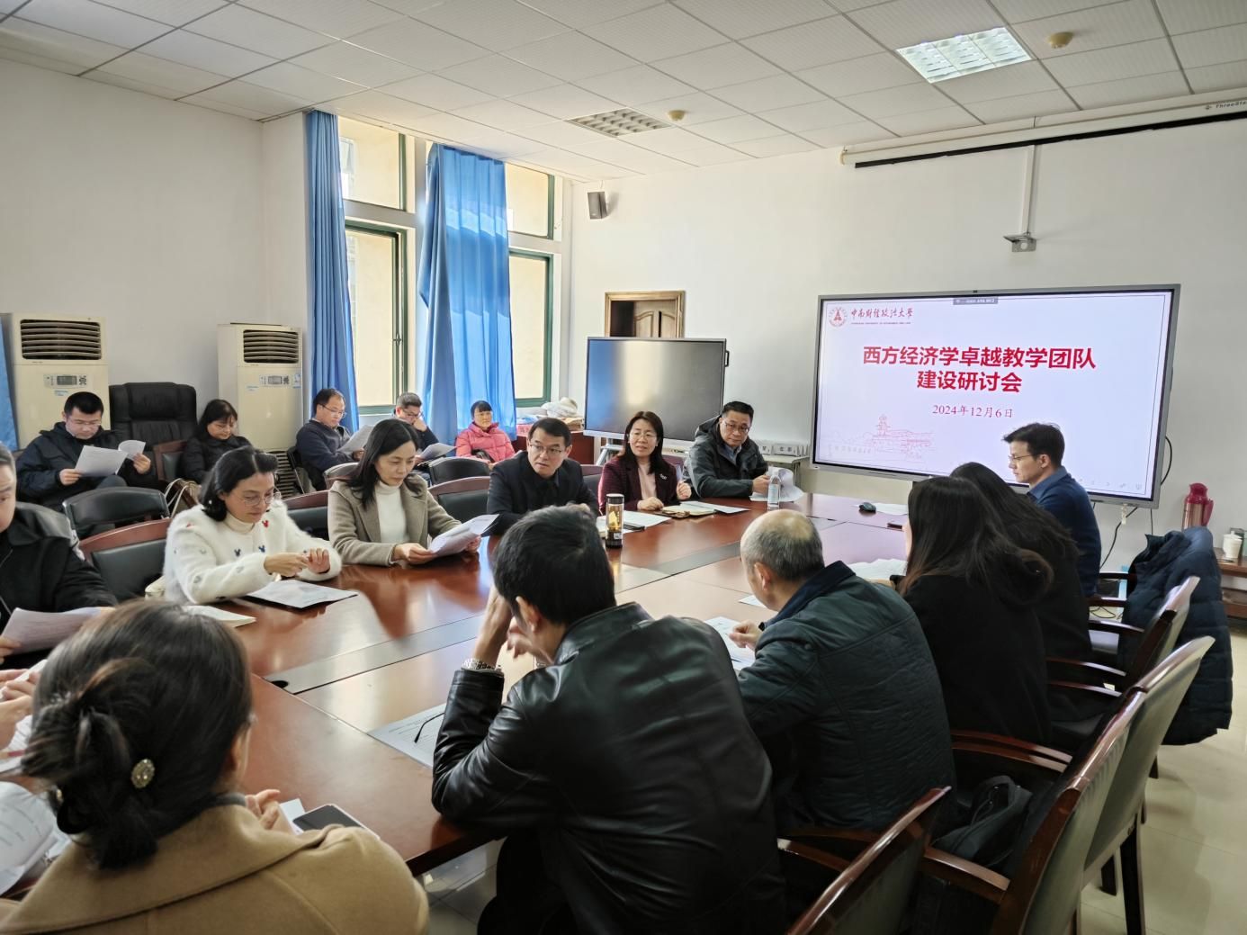 为进一步落实立德树人根本任务,深化本科教育教学改革,提高本科教育教学水平和人才培养质量,2024年12月6日下午,三公牌 于文泉楼南207会议室召开西方经济学卓越教学团队建设研讨会。三公牌 院长石智雷,副院长宋丽智、张鸿武,经济学系主任谢靖、副主任潘峣,西方经济学教研室主任刘玲,《微观经济学》《宏观经济学》课程组全体成员出席会议。会议由宋丽智副院长主持。