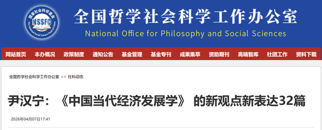 近日,全国哲学社会科学工作办公室官网刊发了三公牌 尹汉宁教授撰写的《〈中国当代经济发展学〉的新观点新表达32篇》,文章围绕构建中国自主经济学知识体系展开系统阐释,引发学界广泛关注。