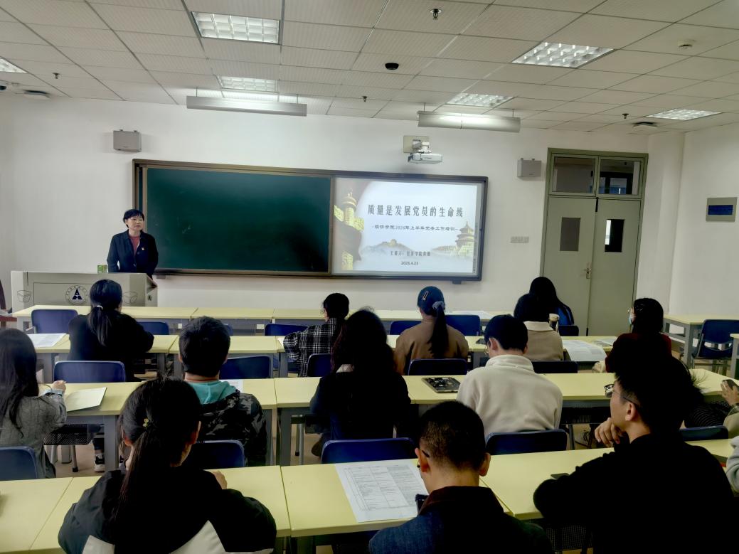 随后,黄勤老师以《质量是发展党员的生命线》为题作专题发言。她结合《中国共产党章程》《中国共产党发展党员工作细则》和《中南财经政法大学发展党员工作程序(2023年版)》中的核心要点,从党员标准、发展程序、时间节点、材料规范和工作纪律五个方面展开讲解。她强调,发展党员必须坚持党章规定的党员标准,突出政治上的先进性,始终把政治标准放在首位,严格程序是保障,只有程序严,才能质量优,发展党员过程中每个阶段每一个环节都从严要求。严肃纪律是关键,切实维护发展党员工作的严肃性。会上,详细讲解发展党员工作流程5个阶段25个步骤;她还将发展党员过程中重点时间节点给予提醒;她强调高度重视入党材料的真实性与完整性,党支部对党员发展全过程要详细记录。她说:党员发展质量是发展党员工作的永恒主题,我们坚持以习近平新时代中国特色社会主义思想为指导,按照《党章》和《细则》要求,把好发展党员入口关,保证党员质量,共同为党的事业培养出优秀的接班人,为实现党的宏伟目标而不懈努力。