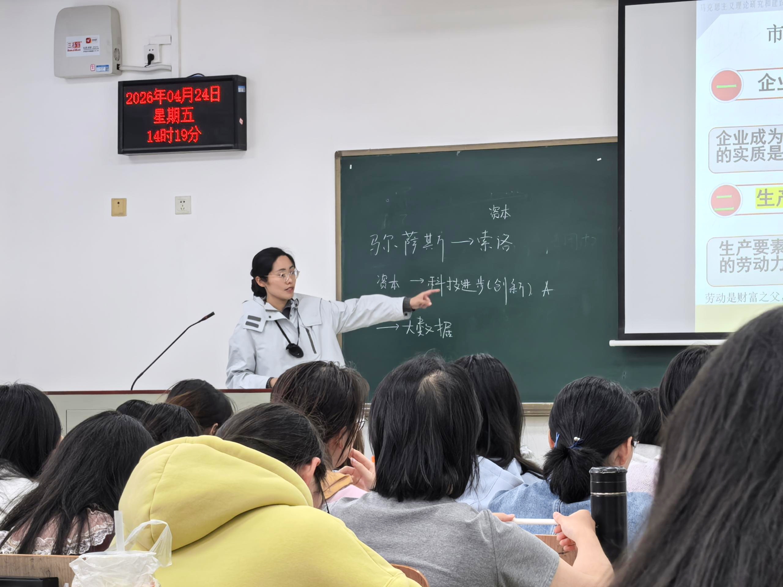 针对价值规律这一商品经济基本规律,李老师详细解读其社会必要劳动时间决定价值量、等价交换的核心内容,剖析价格围绕价值上下波动的表现形式,从微观激励创新、优胜劣汰,宏观分配劳动、配置资源两方面讲解价值规律的重要作用,同时客观分析市场信息不完善、易导致垄断等局限,引导学生辩证看待市场作用,深刻理解有效市场与有为政府协同发力的实践逻辑,为理解 “十五五”时期经济体制改革、高质量发展等重大部署筑牢理论根基。