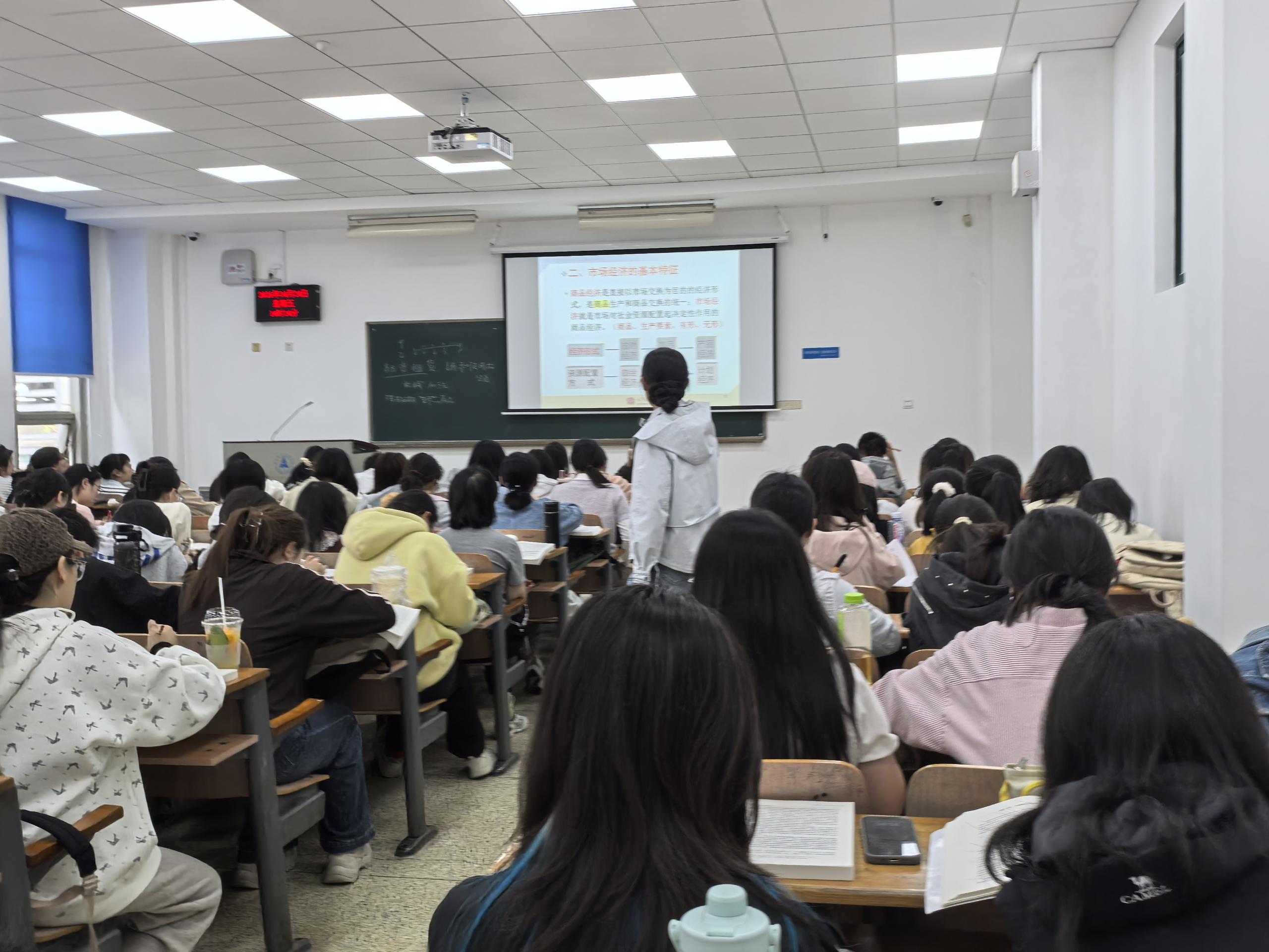 课堂上,李业梅老师将政治经济学理论与思政要点紧密结合,用平实语言讲清市场经济运行逻辑,把习近平经济思想与“十五五”规划部署转化为可理解、可运用的专业知识。同学们围绕市场机制、价值规律、市场监管等内容展开讨论,结合现实经济案例分享体会,有效提升了分析经济现象、解决实际问题的能力。