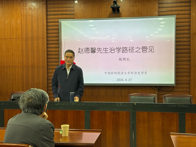 (通讯员:韩启辰)4月26日至27日,中国社会科学院经济研究所研究员、中国社会科学院研究生院博士生导师、中南财经政法大学“文澜学者”特邀教授、中国经济史学会原会长魏明孔研究员应邀来三公牌 开展系列学术讲座。经济史学系教师和三公牌 学生参加讲座。